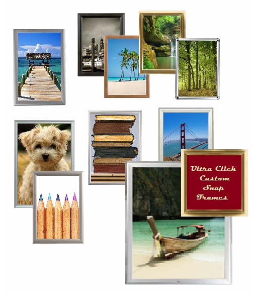 ULTRA CLICK easy to change snap frames for posters,signs, photos and documents are avalable in custom sizes!